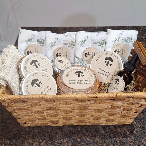 Hermance Hollow is a woman-owned small business nestled on a 30-acre private woodland sanctuary in Galway, NY. We create organic, all-natural skincare and wellness products, handcrafted in small batches using wild-foraged or homegrown botanicals.